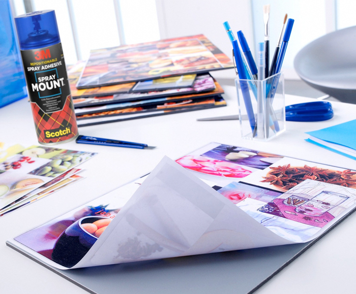 Esprai adhesiu 3M Spray Mount. Permet la reposició en un temps límit.