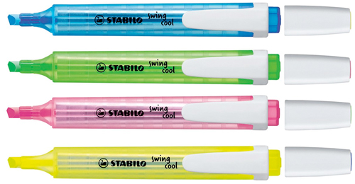 Retolador fluorescent Stabilo Swing Cool amb clip. Blíster 4 colors vius.