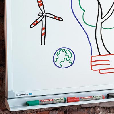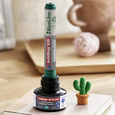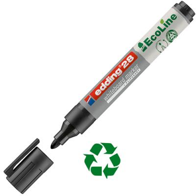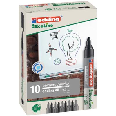 Retolador Edding 28 reciclat per a pissarra blanca. Punta de 3 mm. Cos 90% de materials reciclats. Recarregable amb tinta codi 15541_. Pack de 10 retoladors unicolor / blíster 4 colors.