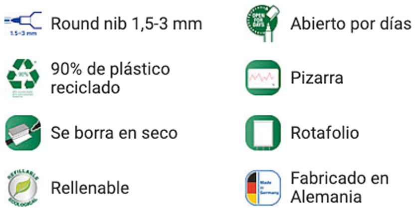 Cos 90% de materials reciclats. S'esborra en sec en quasi totes les superfícies no poroses.