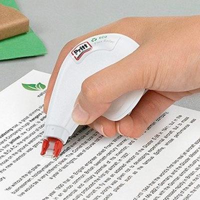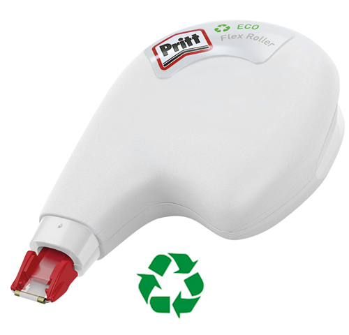 Cinta correctora Pritt Eco Flex Roller. Correcció lateral. Carcassa de plàstic 100% reciclat. Mida 4,2 mm x 10 m. − Aplicació precisa gràcies al capçal flexible que s'adapta al moviment. − Sense dissolvents. 100%