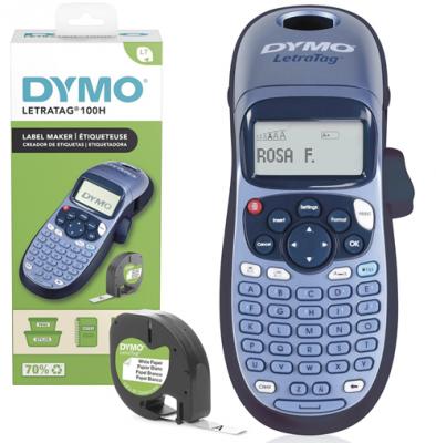 Retoladora Dymo LetraTag 100H. - Dispositiu portàtil que imprimeix etiquetes, ideal per l’oficina, l’escola i la llar. - Utilitza cintes Letratag de 12 mm, amb acabats de paper, plàstic, metal·litzat i transferible tèxtil. - Imprimeix fins a 2 línies. - Gran pantalla amb previsualització de la impressió. - Fonts, mides i gràfics diversos. - Memòria de l’última etiqueta. - Memòria per a 9 etiquetes d'ús freqüent. - Apagat automàtic quan no s’utilitza. - Alimentació amb 4 piles AA d’1,5V (no incloses).