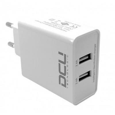 Carregador de paret DCU amb 2 ports USB. - Entrada: 100-240VAC. - Sortida: 5V 4,8A x 2 USB. - Mida 57 x 50 x 27 mm. - Pes 60 g.