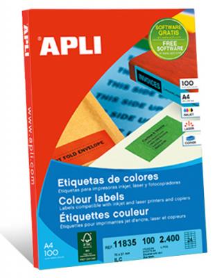 Etiquetes de color aptes per a ink-jet, làser i fotocopiadora. Caixa de 100 fulls.