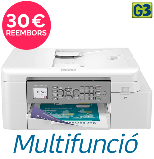 PROMOCIÓ REEMBORS BROTHER Per a compres realitzades de l'1.10.2025 al 30.11.2025 Per sol·licitar el reembors de 30€ cal emplenar el formulari en línia i adjuntar còpia del justificant de compra. Disposa fins al 31 de desembre de 2025 (inclòs) per fer la sol·licitud. Trobarà el formulari AQUÍ. Consulti les condicions AQUÍ.