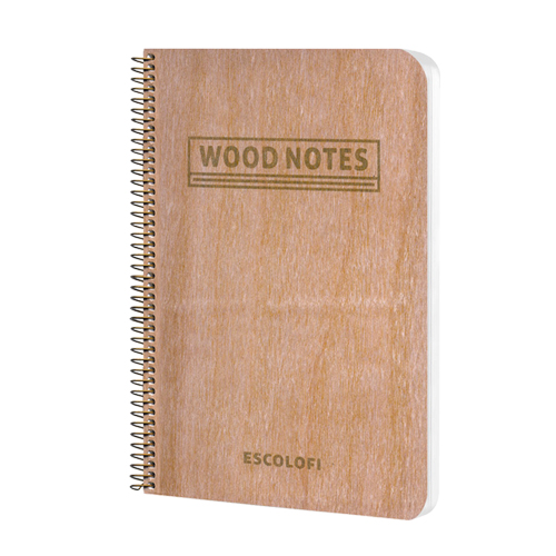 Quadern espiral amb tapes de fusta natural. Paper 90 g Premium amb ratlles. 70 fulls. Mida A5 13 x 21 cm. Fulls ratllats