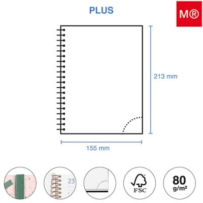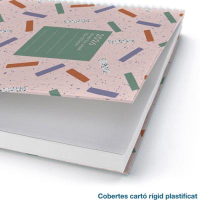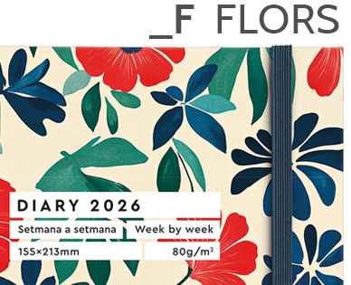Agenda ESPIRAL Plus Setmana Vista horitzontal. Tapes dures de cartró folrat plastificat i espiral. Paper de 80 g imprès a 2 tintes. Conté: dades personals, full per a dates importants, calendari 3 anys, plàning mensual, festius a Catalunya, fulls de notes i índex telefònic. Idioma principal català (català, portuguès i anglès). Mida A5 15,5 x 21,3 cm.