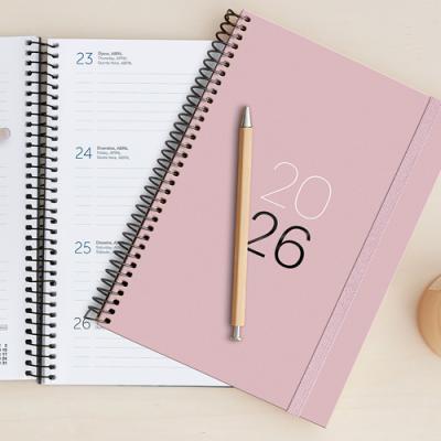 Agenda ESPIRAL BASIC CALM Plus Setmana Vista horitzontal. Tapes dures de cartró folrat plastificat mat i espiral. Paper extra opac de 80 g imprès a 2 tintes. Conté: dades personals, full per a dates importants, calendari 3 anys, plàning mensual, festius a Catalunya, fulls de notes i índex telefònic. Idioma principal català (català, portuguès i anglès). Mida A5 15,5 x 21,3 cm.