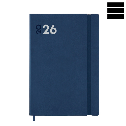 Agenda MARA Setmana Vista vertical. Tapes semiflexibles de material sintètic. Tancament amb goma. Paper de 80 g imprès a 2 tintes. Conté: dades personals, plàning anual, calendari, dies festius nacionals i autonòmics, horaris, notes i índex telefònic. Idioma principal català (català, francès, euskera, portuguès i anglès). Mida A5+ 16,5 x 24 cm.