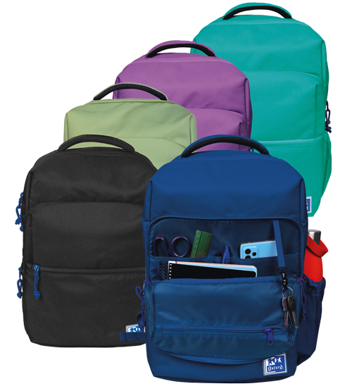 Motxilla Oxford B-Ready de plàstic reciclat RPET ecològic. Cinc cremalleres, una amagada a l'esquena (total 12 compartiments). Compartiment interior folrat per al portàtil. Dues butxaques laterals amb goma. 28 litres. Mida 30 x 15 x 42 cm d’alçada. - Nansa reforçada a la part superior i esquena encoixinada. - Tirants amples, encoixinats i ergonòmics. - Elements reflectants frontals i posteriors. - Protectors de goma a la base i tela de reforç. - Butxaca secreta a l'esquena de doble cremallera per a dretans i esquerrans. - Clauer amb mosquetó per a les claus.