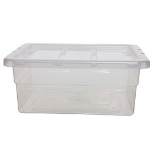 Caixa amb tapa de polipropilè transparent. Apilable i encaixable. Tapa inclosa. Capacitat 15 litres. Mida exterior 32 x 40 x 17 cm d’alçada.