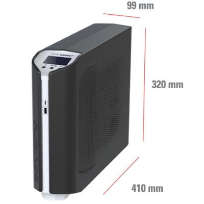Sistema d'alimentació ininterrompuda SAI SALICRU SOHO+ SCHUKO. - Tecnologia Line-interactive que regula la tensió dels dispositius: protegeix contra pujades o baixades de tensió sense activar la bateria. - Doble carregador frontal USB (USB-A + USB-C). - Pantalla LCD completa amb tota la informació. - Estabilització permanent (AVR). - Software de monitoratge per a Windows, Linux i Mac. - 4 preses de sortida Schuko (endoll comú). - Protecció tèrmica d'entrada. - Arrancada automàtica en tornar el subministrament elèctric. - Alta protecció contra sobrecàrregues i curtcircuits. - Temps de càrrega de 6 a 8 hores al 90%. - Tensió d'entrada i sortida de 230 V. - Freqüència d'entrada i sortida de 50 / 60 Hz. - Mida 41 x 9,9 x 32 cm. - Pes 11,8 kg (codi 92936) / 12,5 kg (codi 92935). Codi 92936: 1650VA / 900W de potència. Codi 92935: 2250VA / 1200W de potència.