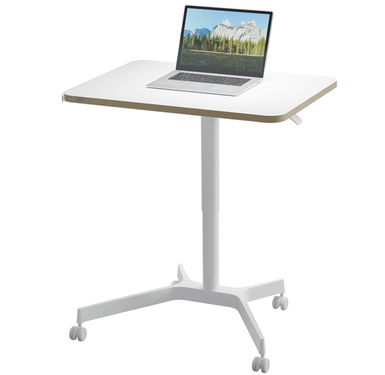 Taula escriptori Leitz Ergo amb regulació pneumàtica d'alçada. Pensada per permetre als usuaris anar canviant la posició de la taula per treballar assegut o dret. Regulació d'alçada de 75 a 114 cm amb un suau ajustament pneumàtic. Disposa de 4 rodes giratòries 360º amb fre i aptes per a qualsevol terra. Tauler mida 60 x 80 x 2,5 cm. Suporta fins a 20 kg.