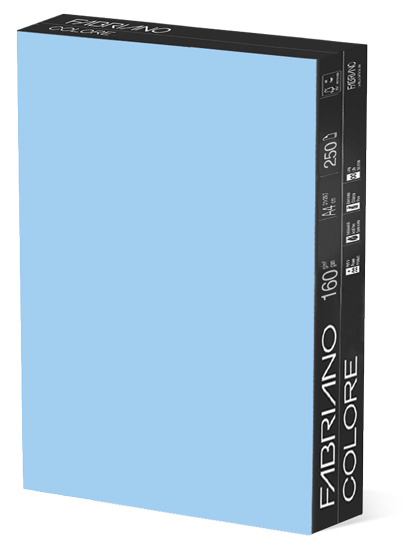 Cartolina de color 160g Fabriano Colore color blau mig. Paper de qualitat prèmium que satisfà les més altes exigències. Paper certificat FSC. Cel·lulosa 100% ECF (Sense clor elemental). Apte per a fotocopiadores, impressores làser i d’injecció de tinta. Mida A4: paquet de 250 fulls de 21 x 29,7 cm. Mida A3: paquet de 125 fulls de 29,7 x 42 cm.