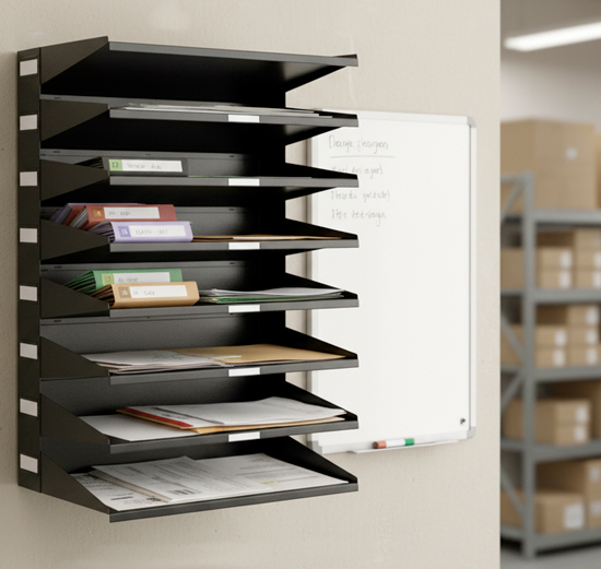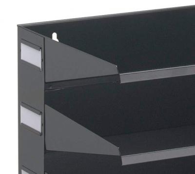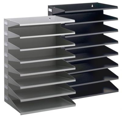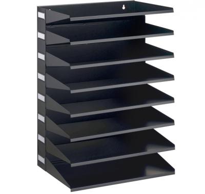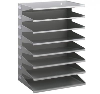 Prestatgeria de paret/sobretaula metàl·lica de 8 cubetes amb portaetiqueta lateral. Safates fabricades amb xapa d'acer, aptes per a documents en format A4/Foli. Ús a sobre la taula o per penjar a la paret*. Mida 36,5 x 25,5 x 55,5 cm d'alçada. * Cal tenir en compte que la superfície o paret on s’instal·li suporti el pes del mòdul i el seu contingut. FITXA TÈCNICA MÒDUL PRESTATGERIA 8 CUBETES DURABLE.pdf