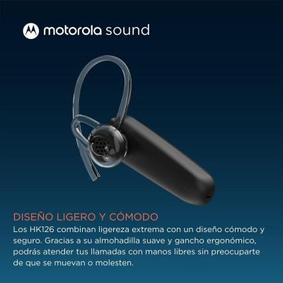 Auricular sense cables MOTOROLA Sound 253HK126 Bluetooth. - Tecnologia Bluetooth sense cables per a telèfon mòbil. - Sistema Bluetooth 5.0. - Abast fins a 10 metres. - Autonomia de 8 hores amb conversa. - Temps de càrrega 3 hores. - Connexió multipunt: pot estar emparellat amb dos dispositius alhora. - Connexió de càrrega Micro USB-C. - Inclou 3 coixinets de goma i cable USB. - Mida 11,2 x 4,19 cm. - Pes 9 g.
