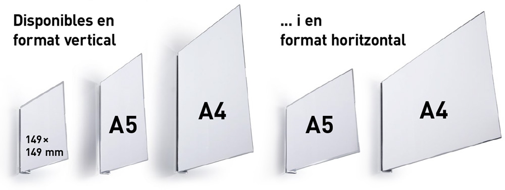 Mides exteriors (A x B x C): Codi 15315: 15,4 x 15,2 x 3,3 cm. Codi 15316: 15,4 x 21,4 x 3,3 cm (A5V). Codi 15317: 21,5 x 15,2 x 3,3 cm (A5H). Codi 15318: 21,5 x 30,1 x 3,3 cm (A4V). Codi 15319: 30,2 x 21,4 x 3,3 cm (A4H).