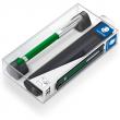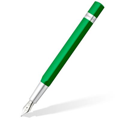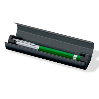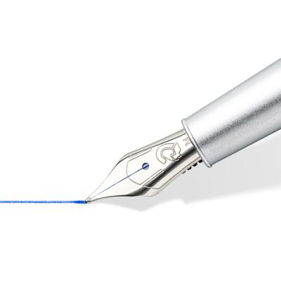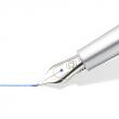 Ploma estilogràfica Staedtler TRX amb cos d'alumini. Forma triangular amb caputxó acoblable. Plumí M d’acer inoxidable amb punta d’iridi. Traç de 0,4 mm. Sistema de cartutx/convertidor. Presentació en caixa individual, amb maletí de muntatge. Inclou cartutx buit i cartutx de tinta blau reial.