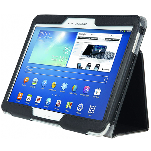 Funda per a SAMSUNG Galaxy TAB3 de 10,1''. - Protecció reforçada a cantonades i vores contra caigudes i cops. - Coberta suau per a la pantalla que evita ratllades i danys. - Compartiments per guardar papers i targetes de visita. - Suport integrat per a visualització de vídeos i per escriure o llegir en angle baix. - Ranura identificativa per a targeta de presentació. - Disseny mans lliures per a més comoditat d’ús. - Mida 25,5 x 18,5 x 2,2 cm. - Tauleta no inclosa.