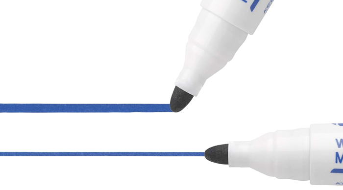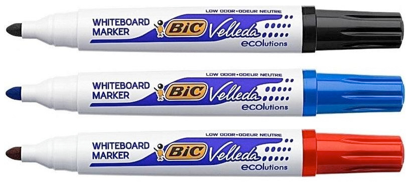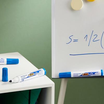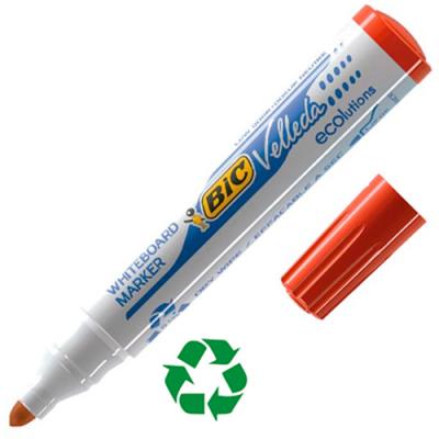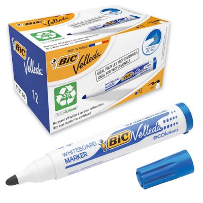 Retolador Bic Velleda Ecolutions de tinta líquida per a pissarra blanca. Cos 51% de materials reciclats. Punta de 2 mm. Pack de 12 retoladors unicolor.