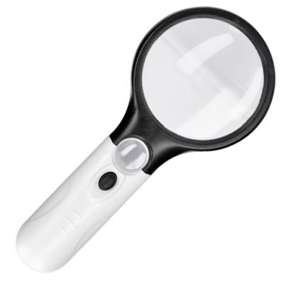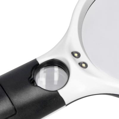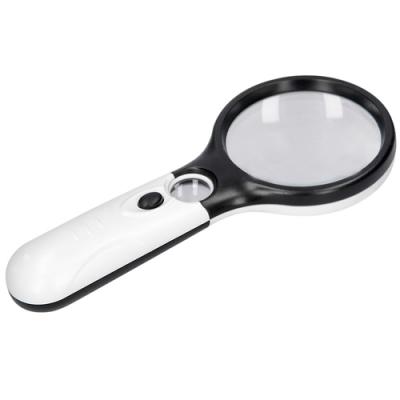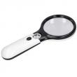 Lupa de 3 augments amb llums LED. Mànec de plàstic ABS amb cèrcol de Ø 8,3 cm.