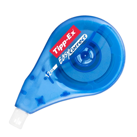Cinta correctora TIPP-EX Easy Correct. Correcció lateral. Carcassa de plàstic. Mida 4,2 mm x 12 m. − Aplicació precisa gràcies al capçal flexible que s'adapta al moviment. − Es pot escriure directament sense esperar a que s'assequi. − Cinta resistent i de fàcil aplicació amb el seu capçal lateral.