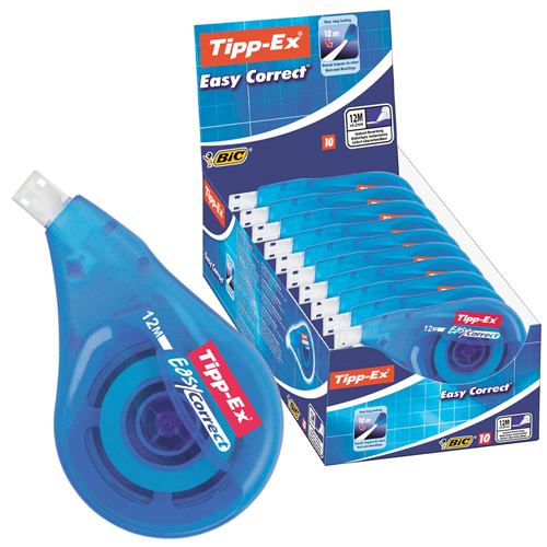 Cinta correctora TIPP-EX Easy Correct. Correcció lateral. Carcassa de plàstic. Mida 4,2 mm x 12 m. Pack de 10 cintes. − Aplicació precisa gràcies al capçal flexible que s'adapta al moviment. − Es pot escriure directament sense esperar a que s'assequi. − Cinta resistent i de fàcil aplicació amb el seu capçal lateral.