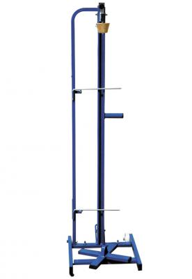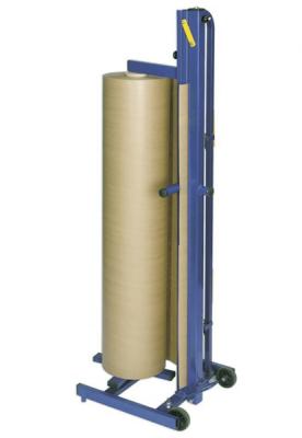Porta-rotlles per a rotlles de paper industrial. Per a bobines amb un màxim de 120 cm d'alçada. D'acer pintat, robust i durable. Base amb dues rodes. Tall amb guillotina (amb guarda de seguretat). Mida 45 x 45 x 144 cm.